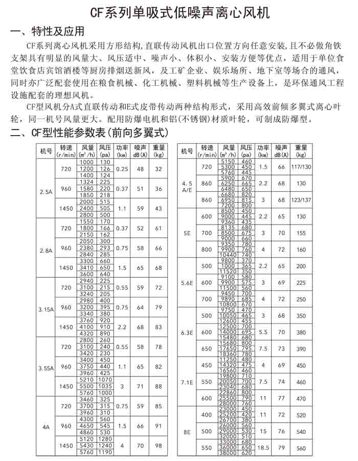 四、CF 系列單吸廚房排油煙風(fēng)機